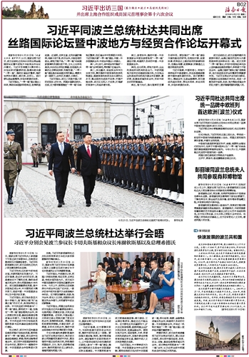 波兰总统杜达、波兰总理希德沃在致辞中表示,丝绸之路在历史和今天都把欧洲同亚洲联系在一起。波兰支持“一带一路”倡议,并在中东欧地区率先加入亚洲基础设施投资银行,积极致力于欧亚合作。丝绸之路同“琥珀之路”连接起来,将为促进欧亚安全和繁荣发挥重要作用。习近平主席这次访问波兰期间,两国建立全面战略伙伴关系,将进一步激发波中经贸、科技、地方等各领域合作的巨大潜力,更好造福两国和两国人民。