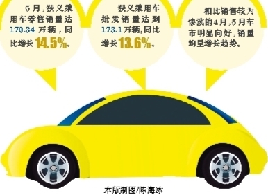 2016年5月,狭义乘用车(通常指轿车+MPV+SUV)零售销量达170.34万辆,同比增长14.5%。(杨万)