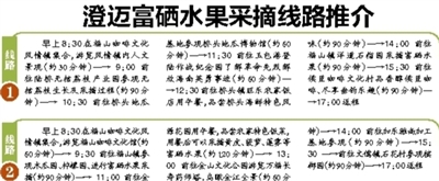 近年来,澄迈以无核荔枝为代表的精品农业发展势头强劲,带动了澄迈“美丽乡村”游的发展,形成了澄迈旅游新亮点。为进一步打造“休闲自驾游”旅游品牌,澄迈还特别设计了精品农业采摘自驾线路等,不仅能让广大游客领略到澄迈的原生态自然环境,还能感受到在澄迈田园采摘水果的乐趣。