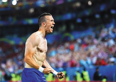 克罗地亚球员佩里西奇庆祝进球。新华社发