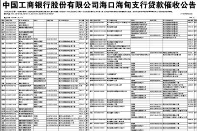 中国工商银行股份有限公司海口海甸支行贷款催收公告