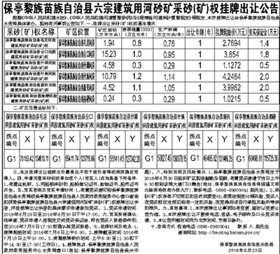 保亭黎族苗族自治县六宗建筑用河砂矿采砂(矿)权挂牌出让公告