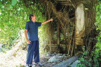 “其实,这间平房是后来建的,陈垂斌当年住的房子在后面。”今年86岁的陈汉云说道,他是陈垂斌的侄子,亲自把记者领到了一片一人高的长满绿叶的藤蔓前,他扒开藤蔓,里面原来是斜木断墙,依稀能看出是一处老房。陈汉云指了指说,就是这里,“我们是大家族,兄弟多,不大的房屋,曾挤满了人。”