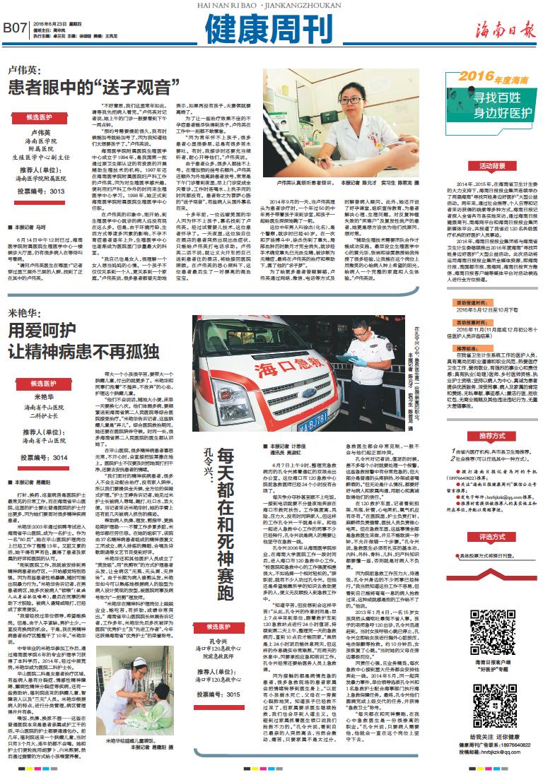 2016年度海南寻找百姓身边好医护