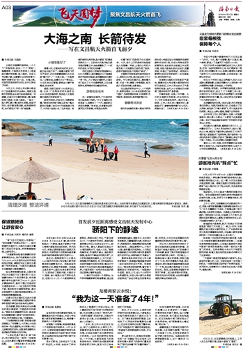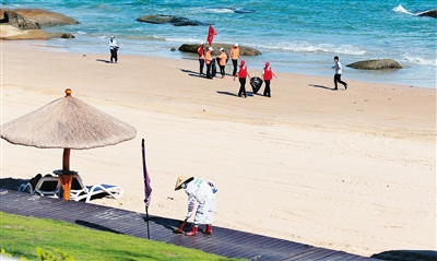 6月24日,在文昌龙楼镇航天卫星发射基地附近的沙滩上,当地的青年志愿者正在清理垃圾,以整洁美丽的环境迎接火箭首发。据悉,长征七号运载火箭计划6月25日至29日在文昌龙楼航天发射场择机发射,执行首次飞行试验任务。本报记者 张杰 摄