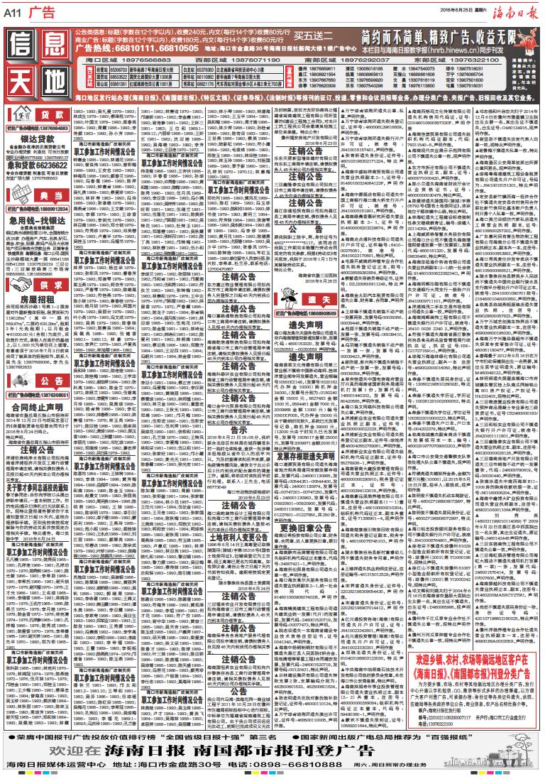 欢迎在海南日报 南国都市报刊登广告