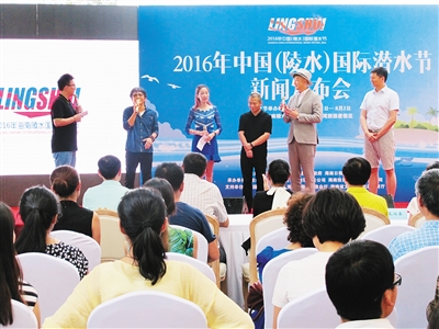 发布会现场,海洋潜水公益宣传明星齐赞陵水。本报记者 程范淦 摄