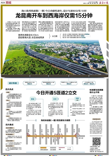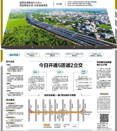 据了解,海秀快速路建成后,海秀路断面通行能力约是之前的3倍。从国兴大道至长滨路仅15分钟,可比之前节约行车时间25分钟。根据车流量测算,每年因车速提升减少油耗可节约资金3600多万元。“海口是一座东西长、南北短、组团式发展的城市,东西总长约30公里,南北向5-10公里。这一特征决定整个城市东西向交通流通量非常大,缺乏一条贯通东西的快速通道。”海口海秀快速路项目部相关负责人介绍,海秀快速路项目的建设,充分利用了海秀路这一通道资源,可以在很大程度上有效沟通长流组团、市中心区和江东组团之间的联系,将有力拉动海口城区范围内东西向的城市建设和经济发展,为海口市各片区的经济发展、交通物流和相互沟通,提供良好的交通基础服务条件,是城市的一个“发展加速器”。海秀快速路的建成通车,还将有效改善海口市内的交通环境,提升居民生活质量。