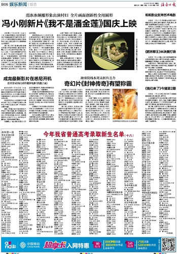 本报海口7月28日讯 (记者卫小林)由著名导演冯小刚执导的新片《我不是潘金莲》昨天宣布定档,将于9月30日起在海南和全国各大院线同步上映,这是记者今天从海南院线业内获悉的。据介绍,《我不是潘金莲》改编自茅盾文学奖获得者、著名作家刘震云2012年出版的同名长篇小说,主人公是一个名叫李雪莲的农村妇女,她为了纠正前夫对她说的一句话——“你是李雪莲吗?我咋觉得你是潘金莲呢?”李雪莲为了告诉大家“我不是潘金莲”,与上上下下、方方面面打了10年交道,她没有想到的是,10年都过去了,她还是没有把这句话纠正过来,在她饱尝人情冷暖的同时,她也明白了一些当代社会的规矩。
