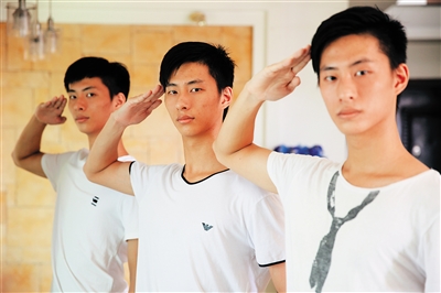本报海口8月13日讯 (记者李磊)今年的暑假对于海口经济学院舞蹈专业学生李周昊、李周易、李周昕三兄弟来说意义非凡。作为三胞胎,他们不仅容貌相似,而且从小就一起练习舞蹈,并一起考入海口经济学院舞蹈专业。今年7月底,他们又一同做出了一个报名参军、报效祖国的决定。三兄弟的家位于海口市海甸岛某小区。走进三兄弟的家,只见这里摆放着他们各种演出时的照片和舞蹈大赛获奖证书。在多年的舞蹈训练中,让他们最为难忘的是,在初一的时候,参加了2009年央视春晚排练。三兄弟曾一起在北京接连排练了一个月,虽然终审时因当时身高未达标被临时换下,但他们还是觉得这次参与已经是对自己多年来舞蹈训练最大的鼓励。