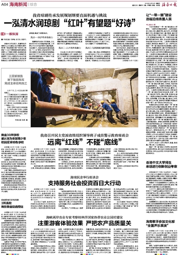 相关专家表示,琼剧的发展正面临着大好机遇,相关单位可联手将琼剧打造成海南的一个文化品牌,以旅游推广琼剧,以琼剧繁荣旅游,让琼剧这一艺术形式精准落地,切实服务于国际旅游岛的建设发展。