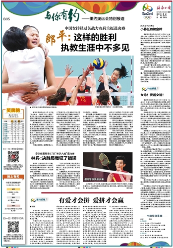 新华社里约热内卢8月18日电(记者徐征 王镜宇)在3:1战胜了荷兰队之后,中国女排主教练郎平也抑制不住喜悦的心情,表示这种胜利在她的执教生涯当中都不是太多见。郎平赛后说:“今天我们做了非常多的准备,也想到0:1落后,0:2落后,想到要打五局。总之希望运动员在比赛没有结束的时候,不管多困难都要顶好每一分。今天我们做到了,虽然在技术上还不是很完美,还有很多机会球没有抓到,但球员们都没有受到影响,打得英勇坚决。今天非常幸运,每一局都赢了2分,在我执教生涯当中这样的比赛不是太多。”