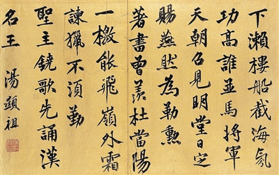 诗在光绪四年(1878)修的《定安县志·艺文志》中可找到,与徐朔方笺校的《汤显祖诗文集》中的同名诗有12个字不同(括号内为徐先生笺校本)。我认为这可能是从王弘诲处得到的最初稿,徐朔方笺校的稿是后来汤的修改稿。诗通过赞颂“五胜”之美,抒发了对海南虽孤悬海外,却聚集了天地间灵秀之气,英才辈出,表达了汤显祖对海南的向往和对王弘诲等的一片景仰之情。