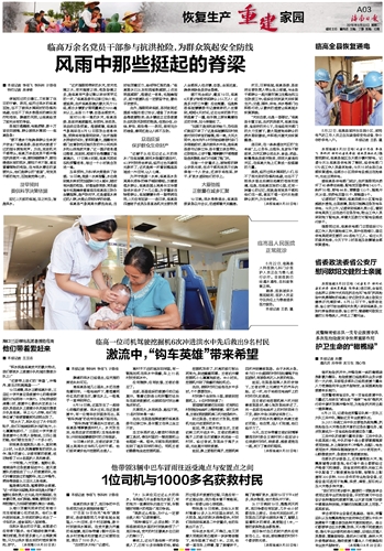 强降雨过后,临高供电部门立即组织570名工作人员开展抢修工作,其中包括海口、澄迈供电局赶来支援的369名电力工人。经过4天的昼夜抢修,今天下午3时县城及各镇墟全部恢复通电。