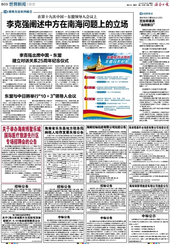 新华社万象9月7日电(记者刘畅 李惠子)国务院总理李克强当地时间7日上午在老挝万象国家会议中心出席第十九次中国-东盟(10+1)领导人会议时,就南海问题阐述中方的立场和主张。
