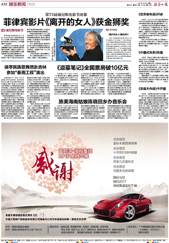 威尼斯电影节新华社意大利威尼斯9月10日电 (记者罗娜)第73届威尼斯电影节10日闭幕,菲律宾导演拉夫·迪亚斯执导的影片《离开的女人》获得最佳影片奖金狮奖。
