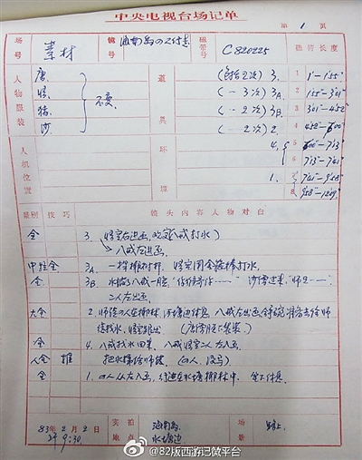 一张珍贵的中央电视台场记单上,记录下了1983年2月2日上午9时30分开始在文昌椰林中拍摄的一幕戏:孙悟空、猪八戒、沙和尚三人在椰林中为唐僧找水喝,期间师兄弟三人对白活泼,动作滑稽。场记也将师徒四人的动作、对白记录得一清二楚,但唯有两字特别引人注目:没马。