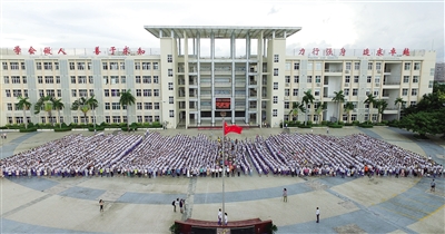 9月1日,三亚市第一中学举行开学典礼暨小手拉大手助力“双修”“双城”“创文”签名活动。 本报记者 武威 摄