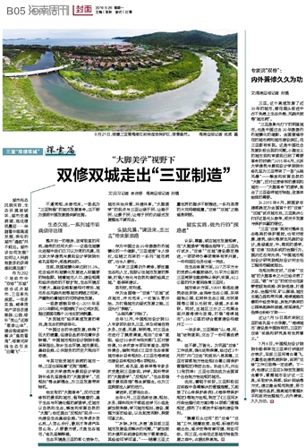 “三亚‘双修’既有对整体生态格局的保护管控,也有对街景、建筑、绿化等原生风貌的设计,是涵盖宏、中、微观的美学,像’双修’如此系统的治理行为,国内还没有先例。”中国城市规划设计研究院规划设计所主任工程师范嗣斌指出。