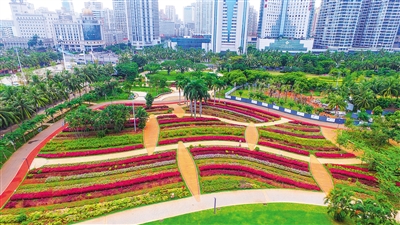 9月26日,在国庆节来临之际,海口万绿园花海争奇斗艳,吸引不少市民观赏留影。据了解,万绿园花海于今年1月开工建设,其建设面积共计6600多平方米,共种植10多个品种近20万株花草。本报记者 张茂 摄