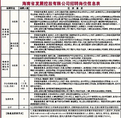 海南省发展控股有限公司成立于2005年,现是海南省省属的国有企业,资产总额超500亿元,下辖全资子公司7家(三、四级子公司几十家),主要控股公司5家,参股公司16家。公司始终着力抢占海南人才高地,持续打造海南人才基地,现有各类人才近3000人,为海南部分单位,尤其是国企输送过许多中高层人才。目前,公司又相继整合及新成立了海南金融控股股份有限公司、海南省水务集团有限公司、海南控股开发建设有限公司,海南省水利电力集团有限公司以及海南天汇能源股份有限公司等五大二级专业公司,正着力实现由投融资平台向具备较强市场竞争力的国有资本投资运营转型升级。其中,海南省水务集团有限公司成立于2016年7月,是全省水务投资、建设、运营的统一平台,控、参股海南16市县水务(污水处理)公司;海南控股开发建设有限公司作为公司区域综合开发的二级平台,于2016年6月成立,负责承接公司区域综合开发、房地产开发经营、物业服务、市政工程建设、酒店商场投资经营和项目策划等业务,致力于成为海南一流的国有企业区域综合开发运营品牌。