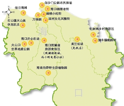1、龙桥镇月茗庄乡村度假区:依托海口羊山地区民居为特色,以海南黎、苗、回民族建筑风情的休闲农庄小院和高标准民居度假屋为铺。建设以海南各民族、各区域的民间民俗传统为标志的特色餐饮、酒吧。