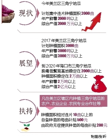 在改良技术提升品质的同时,今年美兰区还制定了详细的工作计划,一步一步地,通过扶持重点农业合作社、举办生产技术培训班、推广“公司+基地+农户”和“公司+合作社+农户”等产业化经营模式等方式,把三角宁地瓜打造成富硒、富锗的品牌。