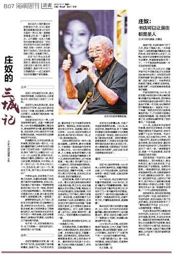 庄奴1921年出生在老北京城,青年时期到重庆投身抗日,辗转赴台后住在台北附近的小城永和,晚年又定居重庆,直至今年10月11日驾鹤西游——这三座城市与庄奴有着割不断的情缘。