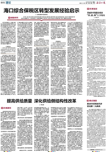 海口综保区的发展实践,为海南经济发展提供了重要经验借鉴。开放型经济的转型升级,必须坚持解放思想、创新驱动;必须坚持大局着眼、协同发展;必须坚持作风开路、实干担当。