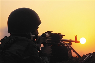 一名伊拉克库尔德士兵在摩苏尔执行警戒任务。 新华社发