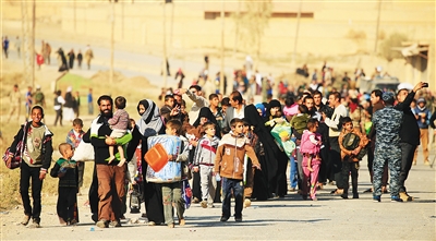 攻城战开始后,逃离战区的平民人数激增。新华社记者在前线采访期间了解到,伊拉克政府和联合国救援机构在摩苏尔周边设置的多座难民营,在11月初每天都要接收数千人,预计将很快达到饱和状态。由于安置营地尚未完全竣工,政府军难以及时疏散市区内的民众。伊政府和国际救援机构已经在调动一切资源加快新营地的建设速度,尽快妥善安置这些平民。