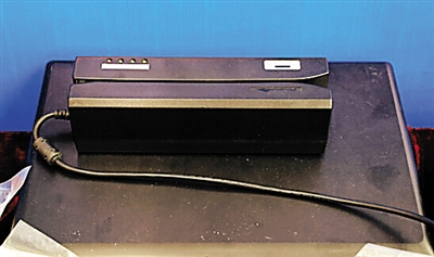 顾客的银行卡信息在被记录之后,传输到团伙后方。后方作案电脑装有特殊软件,并与“写卡器”相连。其用途是读取银行卡磁条信息,并将磁条信息写入空白卡。