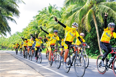 游客在海南欢乐骑行。