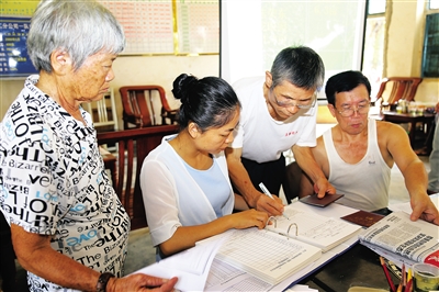 职工拿着户口簿核对土地信息,在指界通知书和信息卡上签名。 通讯员 周玲 摄