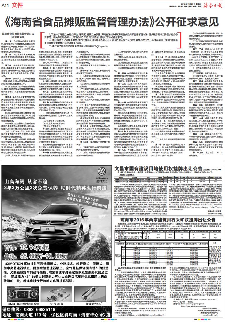 《海南省食品摊贩监督管理办法》公开征求意见