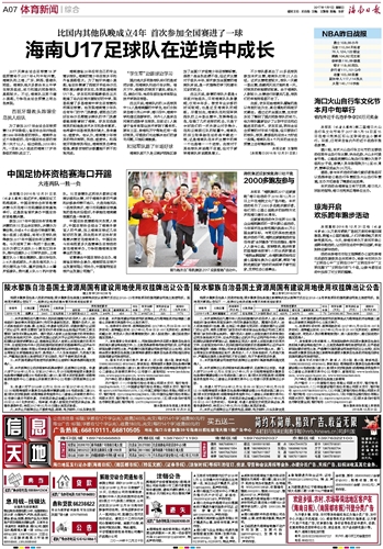 海南队前不久赴云南泸西地区参加了全国17岁组青少年足球锦标赛,虽然7战全负成绩不佳,但这次比赛对于组队半年、首次参加全国赛的海南队来说,是一次难得的学习和增长见识的机会。