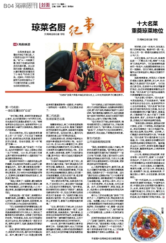 说起海南美食,浮现在人们脑海的便是文昌鸡、嘉积鸭、东山羊、和乐蟹这久负盛名的“四大名菜”。它们成名已数百年,在琼菜中占有非常重要的地位,但近年来随着海南餐饮业的发展,“四大名菜”已不能完全涵盖和代表海南餐饮文化及水平。