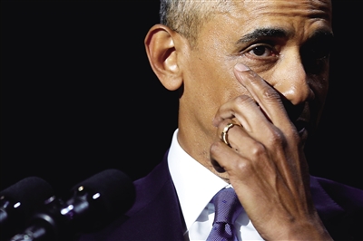 1月10日,在美国芝加哥,美国总统奥巴马在发表告别演讲时拭去泪水。还有9天,贝拉克·奥巴马将离开白宫,卸任美国总统。当地时间10日晚8时,他在芝加哥发表告别演说。按照路透社的说法,这篇演说带有些许“乡愁”。 在长达近一个小时的告别演讲中,他说,种族主义仍是美国的“分裂力量”,美国面临挑战。他表示,当年他赢得总统选举胜利后,部分民众一度认为美国进入了“后种族主义时代”,但这与现实不符。他呼吁美国能够弥合分裂,团结在一起。