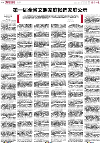 陈丁胜家庭,琼海市嘉积镇龙利坡社区,家庭成员5人。作为一家26年民营企业的掌舵人,他将“家·孝”作为公司的企业文化。不论是员工或员工家属因病住院、家庭困难、员工子女上学等事宜,他都会亲力亲为,深受企业员工和邻里称赞。