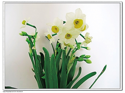 “水仙秋菊并出姿,插向瓷瓶三两枝”。看样子,钱牧斋也是爱好插花之人,他的诗不但阐明了插花的巧配,更说明了插花的枝数,这也应了过密过繁则俗的俗语。插花当然要根据个人的爱好,随意调配,只要能做到巧、活、俏相溶,色、形、趣相配,给人以美感,给人以享受,就是独到天成了。