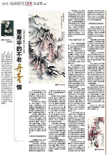 赵宝琴还记得,董寿平在创作中力求作画的每根线条,既要表现事物的精神实质,还要有作者对生命的理解。就是他把生命的理解融于笔尖,才创作出了独一无二的书画作品。