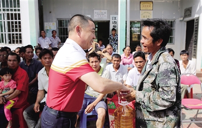 1月12日,海南中远海运博鳌有限公司派员到定点扶贫村东方市江边乡老村,慰问68户贫困户。 本报记者 苏晓杰 通讯员 王鸿 邢明弟 摄