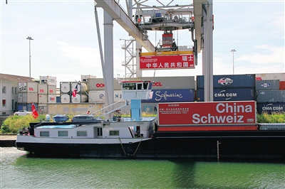 2014年7月1日,首批来自中国的零关税货物抵达瑞士最大内陆港巴塞尔。 新华社记者 张淼 摄