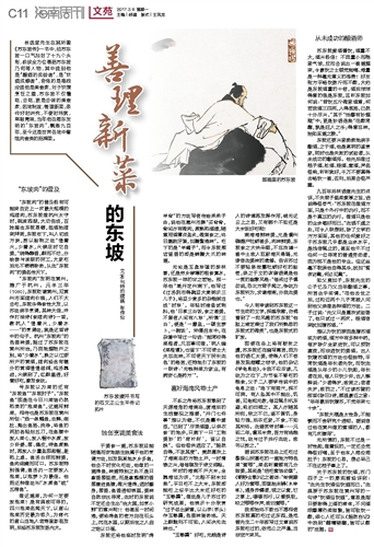 文\本刊特约撰稿 张传伦林语堂先生在其所著《苏东坡传》一书中,给苏东坡一口气加封了十九个头衔,极欲全方位概括苏东坡乃何等人物,其中提到他是”酿酒的实验者”,是“饮酒成癖者”,奇怪的是唯独没提他是美食家,对于饮馔烹饪之道,苏东坡不仅懂吃、会吃,更是会做的美食家,因地制宜,善理新菜,条件好时讲究,不便时将就,常啜隽味,当年他在鄂东发明的“东坡肉“,飘香九百年,至今还是世界各地中餐馆肉食类的招牌菜。