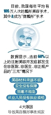 编者按生活中,很多人都希望通过整容达到变美的目的。和大刀阔斧的“改头换面”相比,不开刀、不动骨、创伤小的“微整形”获得了越来越多爱美人士的青睐。国际美容整形外科学会公布的数据显示,目前,我国每年平均有105万人次的整形美容手术,其中八成为“微整形”手术。