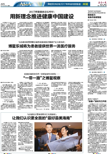 郝希山还认为,随着国民生活水平的提高,健康越来越为人们所重视。但因为国内医疗条件有限,先进诊疗手段和药物的引进需要周期,许多罹患难治性疾病的患者便不惜代价,远渡重洋到发达国家接受治疗。他及其他嘉宾一样充满信心:用好用足“四个特许”优惠政策,让更多新型的药物、设备能在这里使用,未来的博鳌乐城一样能够为这些患者提供世界一流的医疗服务,让他们免受奔波之苦。