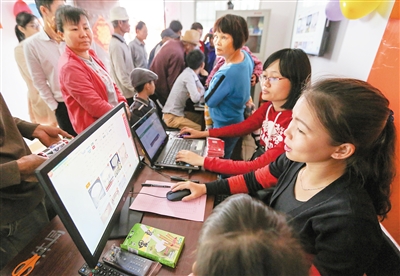 陵水港坡村淘宝服务站,工作人员在帮村民网上下单购物。