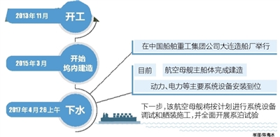 航空母舰在拖曳牵引下缓缓移出船坞,停靠码头。 新华社发