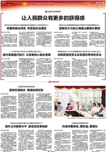 “党代会报告提出,要加快构建覆盖城乡、公平合理、普惠性强的基本公共服务体系,不断增进人民福祉,医疗健康是其中不可忽视的内容。”关大权代表是屯昌县人民医院五官科主任,报告提出“建设健康海南”,让他十分期待。