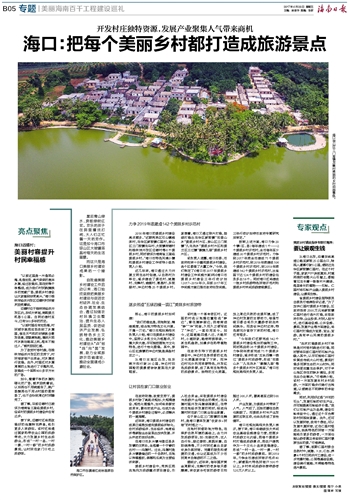 “我们的做法是,因地制宜、精准施策,结合地方特色文化开展,不搞一刀切。”海口市规划局相关负责人介绍,海口在美丽乡村建设中,坚持以乡愁文化为落脚点,不搞大拆大建,尽可能挖掘地方文化特色,进行个性化塑造。其中,琼山区红旗镇的泮边村就是典型村庄之一。